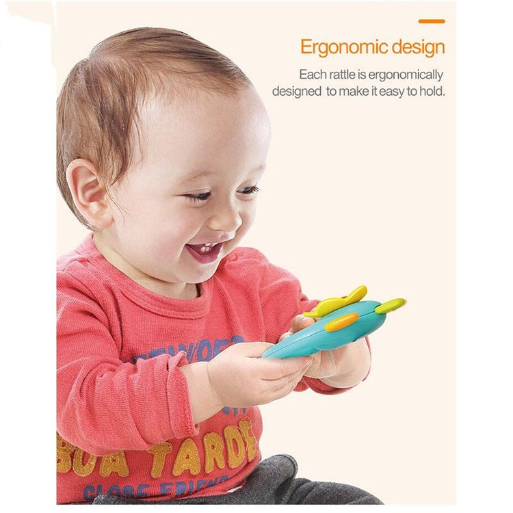.جغجغهها و اسباببازیها با طرحهای مختلف، چشمهای کودکان را به خود خیره میکنند، گوشهای کودکان را تحریک میکنند، رشد اولیه کودکان را بهبود میبخشند و توانایی کودکان را شناخت رنگ تقویت میکند. این اسباب بازی از چند رنگ روشن طراحی شده اند که توجه کودک را به خود جلب میکند. همچنین به دلیل سوراخ های ریزی که دارند آب از آن خارج می شود به همین دلیل به عنوان اسباب بازی حمام نیز مناسب است.