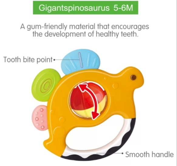 بچه ها نسبت به صداهای محیط اطراف خود واکنش نشان می دهند. جغجغه اسباب بازی مناسب گروه سنی 3 ماه به بالا است و با صداهای بامزه ای که تولید میکنه توجه کودک را به خودش جلب میکنه. جغجغه ها دارای چرخ و مهره هایی است و به دلیل رنگبندی زیبا و متنوع اش باعث تقویت حس بینایی، شنوایی، لامسه کودک و هماهنگی چشم و دست کودک می شود. همچنین جغجغه های این ست با طرح های خاص دایناسورهای بامزه، رنگ زیبا و صدای آرامش بخششون میتونن نقش مهمی در سرگرمی نوزادان و جلب توجه آنها داشته باشن. این ست 5 عددی جغجغه و دندانگیر کودک با طرح دایناسورها و رنگ متنوع، از متریال مرغوب و با کیفیت تولید شده است