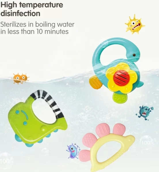 روش تمیز کردن جغجغه و دندانگیر کودک: برای ضد عفونی کردن جغجغه و دندانگیر آنها را در کمتر از 10 دقیقه در آب جوش یا دستگاه استریل قرار دهید. طرح این جغجغه و دندانگیرها محو نمیشوند، تغییر شکل نمیدهند.