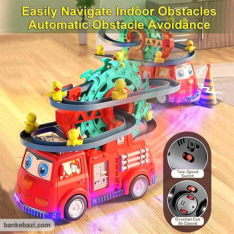 اقلام همراه: چرخ و فلک و سرسره، 3 عدد عروسک اردک چرخ دار
