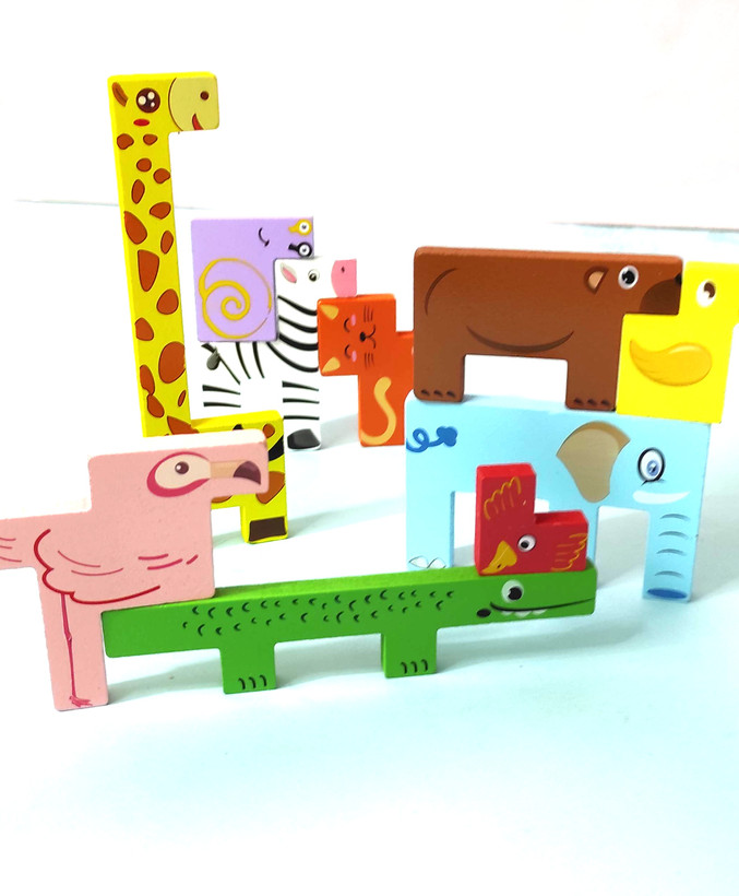 قطعات این بازی از چوب بسیار با کیفیت و ضخیم با تصویرسازی زیبا به شکل حیوانات ساخته شده است. ضخامت قطعات به شکلی است که بچه ها می توانند علاوه بر بازی معمایی با چیدن قطعات روی یکدیگر به صورت برج بازی تعادلی را هم تمرین کنند.