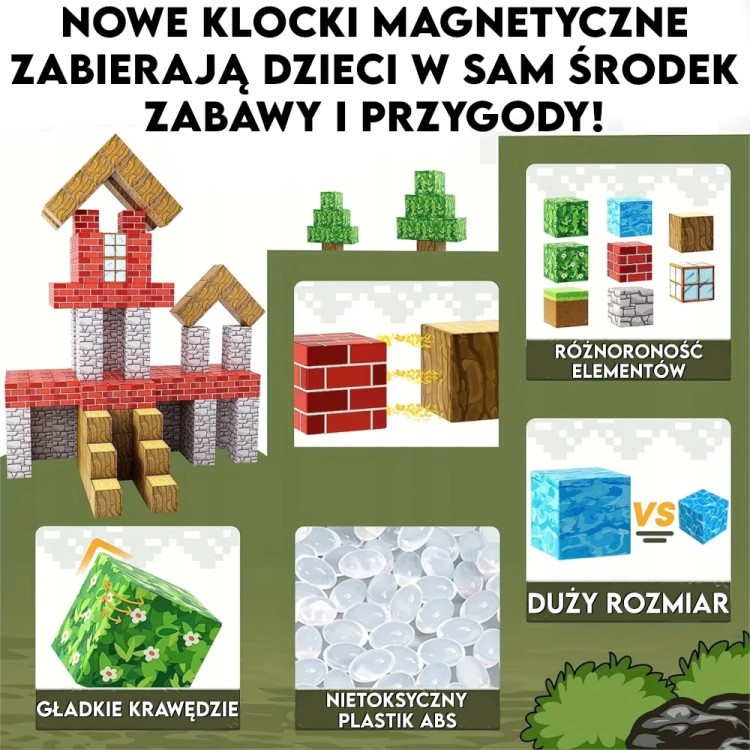 - 🔸 شامل ۱۹۸ قطعه مغناطیسی با طراحی الهامگرفته از ماینکرافت