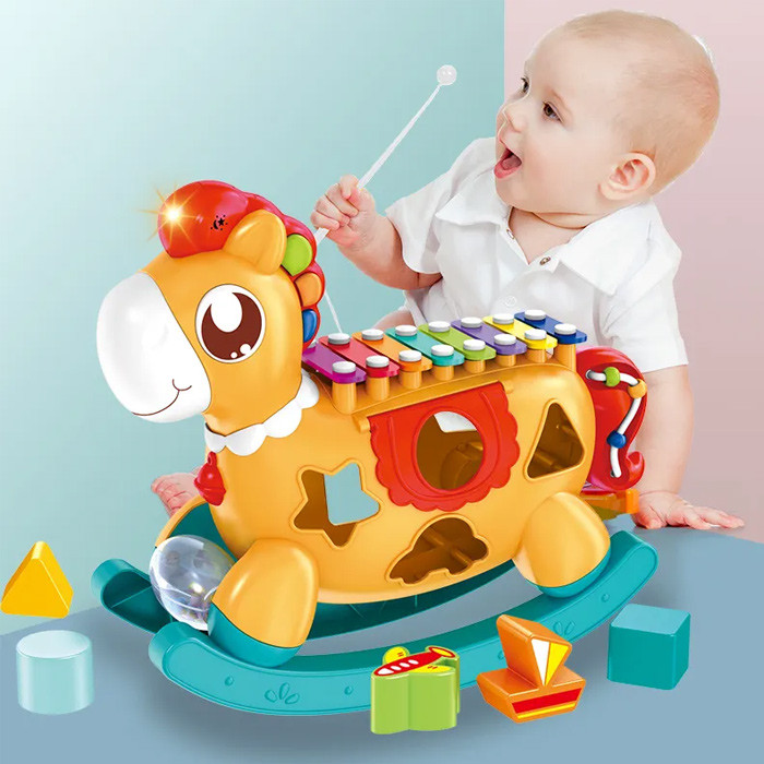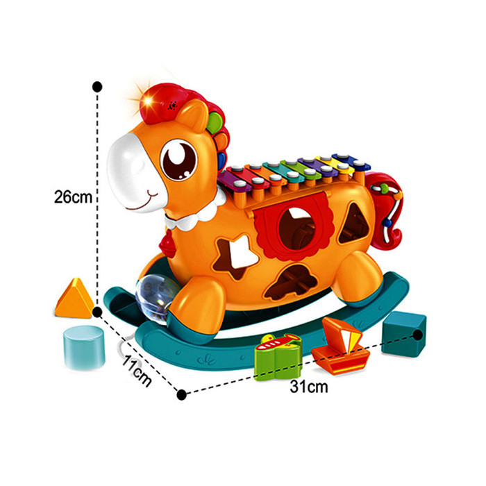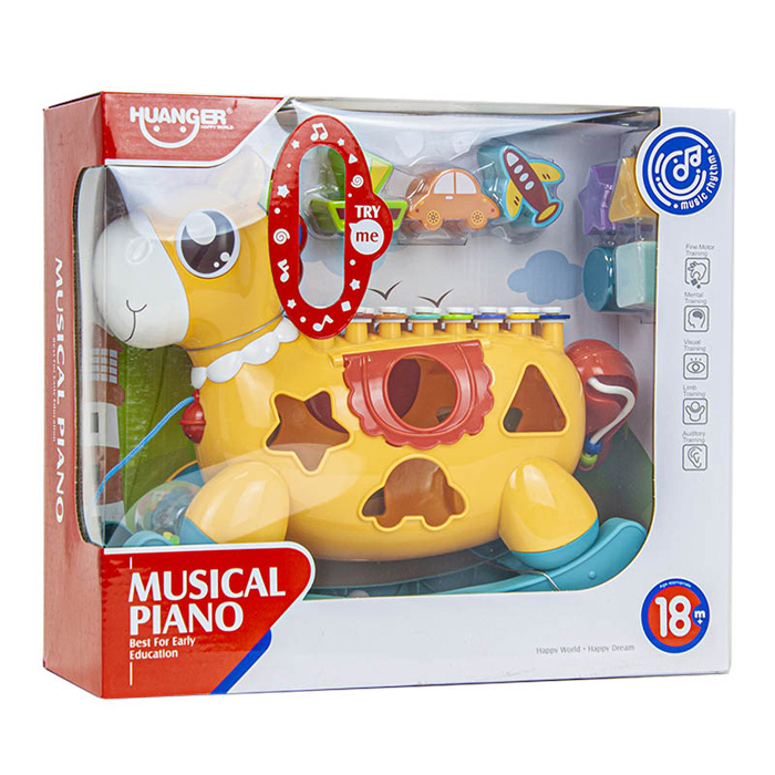 مشخصات محصول : موزیکال و چراغدار ،به همراه باز و جغجغه ،و پازل جایگذاری اشکال ،بع همراه کارت نوت برای نواختن ملودی های مختلف