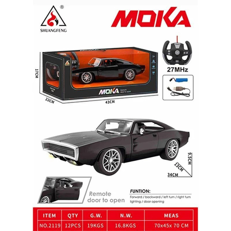 ماشین کنترلی Moka طرح دوج چلنچر مدل 2119 یک ماشین کنترلی جذاب و سرگرمکننده است که با طراحی الهامگرفته از خودروی اسپرت آمریکایی Dodge Challenger ساخته شده و تجربهی بازی با یک ماشین RC واقعی را به کودکان و نوجوانان ارائه میدهد. طراحی بدنه این محصول با جزئیات چشمگیر و ظاهری شیک، باعث میشود ظاهر آن مشابه خودروهای واقعی باشد که بسیاری از علاقهمندان به خودروهای اسپرت به آن علاقهمند هستند.