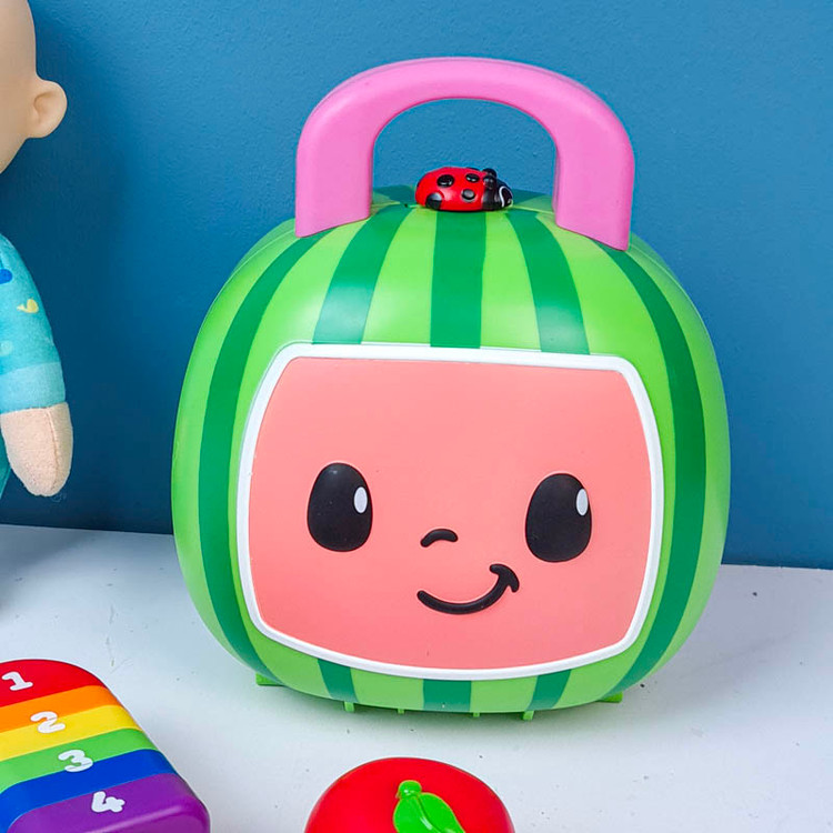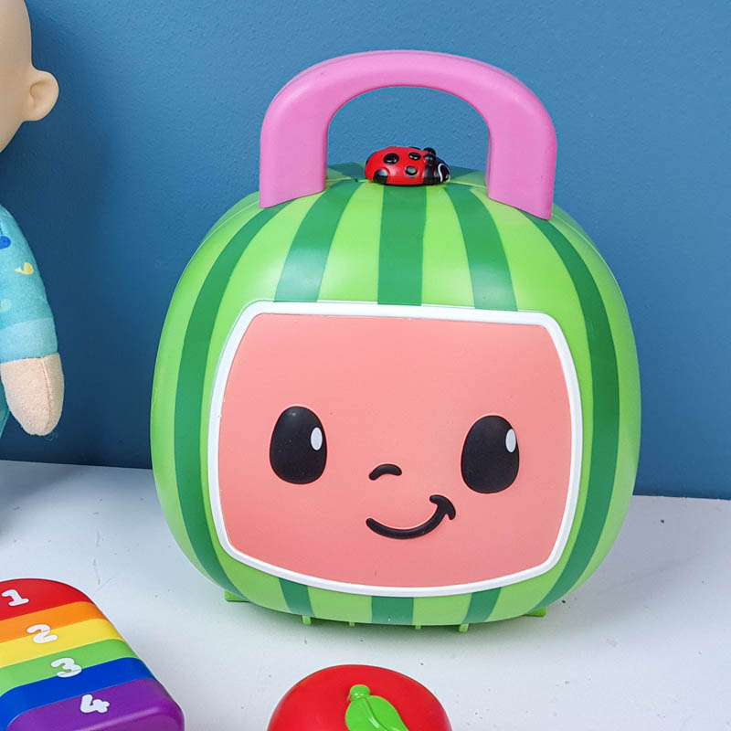 کودک شما هم عاشق کارتون کوکوملون و شخصیت های آن هستند؟ ظرف غذا و عروسک کوکوملون 16 تکه یک اسباب بازی سرگرم کننده برای کودکان 2 سال به بالا است و دارای 1 عدد فیگور جی جی، ظرف غذا، قاشق، چنگال، بستنی جاگذاری، تست و نیمرو، سیب است که قابلیت برش دارد. این ظرف غذا و عروسک پولیشی کوکوملون برای دوستداران جی جی و کارتون کوکوملون بسیار جذاب است. این اسباب بازی همچنین دارای یک ظرف غذا به شکل هندوانه کوکوملون است که دارای 3 قسمت است و دارای تائیدیه تست سلامت هستند که با استانداردهای سختگیرانه تعریف شده است و از این رو از پلاستیک ABS است و فاقد مواد شیمیایی و فتالات های ممنوعه است.
