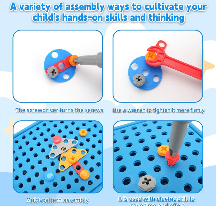 یه اسباببازی خلاقانه و آموزشی برای کوچولوهای بالای ۳ سال! با این ست میتونن با پیچگوشتی برقی کوچیک، قطعات رنگی رو روی صفحه وصل کنن و شکلهای مختلف بسازن. هم سرگرم میشن هم مهارت دستشون تقویت میشه. 🎉