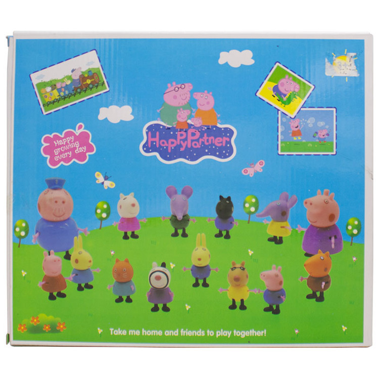 به دنیای پپا پیگ، جایی که جورج، پپا، مادربزرگ و پدربزرگ خوکه از انجام ماجراجویی های جدید لذت میبرند خوش اومدید. دوست دارید شماهم باهاشون همراه بشید و با شخصیتهای مورد علاقه پپا پیگ ساعت ها داستان سرایی کنید؟ مناسب برای کودکان بالای 3 سال. کودکان 36 ماه به بالا از گذراندن وقت با پپا پیگ، جورج،ربکا،سوزی و جرالد لذت خواهند برد. این محصول شامل 14 فیگور از شخصیت های محبوب پپا مثل پپا، جورج، مامان بزرگ، پدربزرگ، سوزی، کندی، زوزو و.... است. این اسباب بازی برای دوست داران پپا پیگ یک هدیه فوق العاده می باشد.