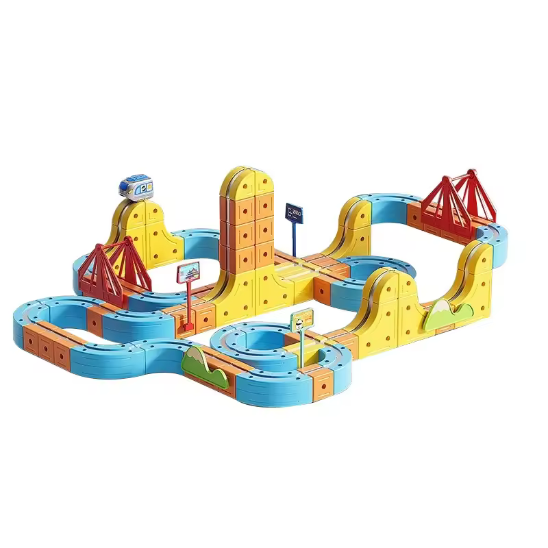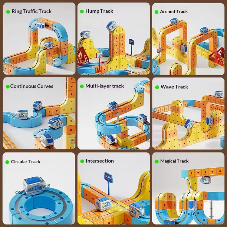 این ست برای تقویت خلاقیت، مهارتهای حرکتی و آشنایی با اصول ساده مهندسی بسیار مناسب است. قطعات مقاوم و مگنتهای قوی باعث میشود مسیرها پایدار بمانند و قطار بهنرمی روی آن حرکت کند.
